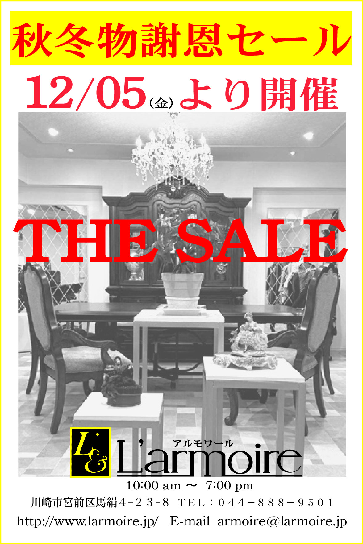 | 2020/12/01 秋冬物謝恩セール開催のお知らせ |